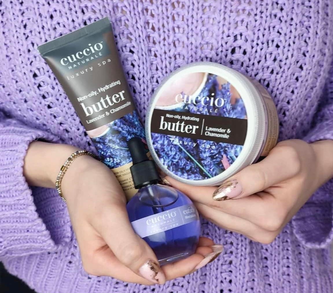 Lavender has natural stress relieving and moisturizing benefits while Chamomile is a natural antioxidant that contains soothing moisturizing properties.